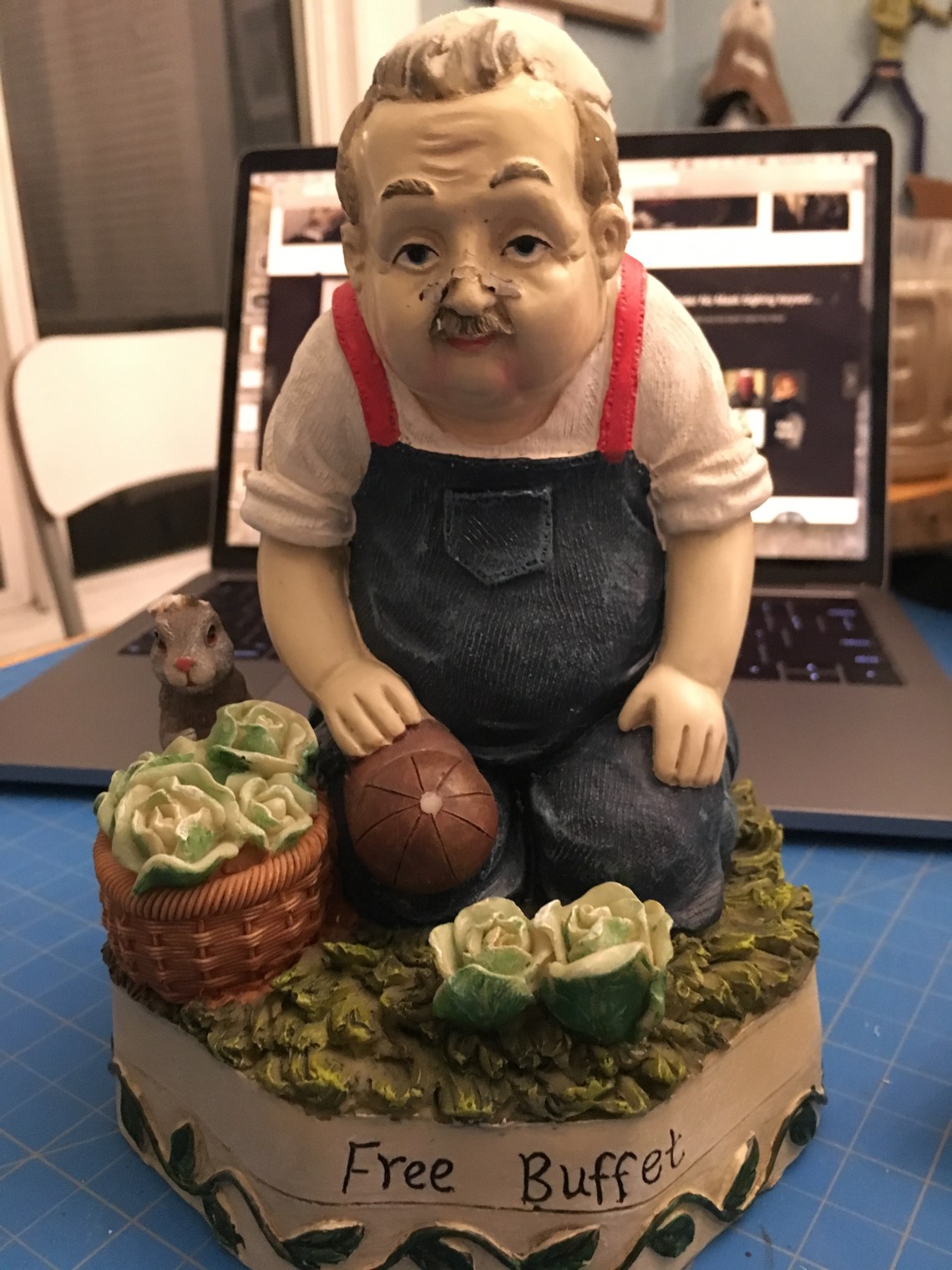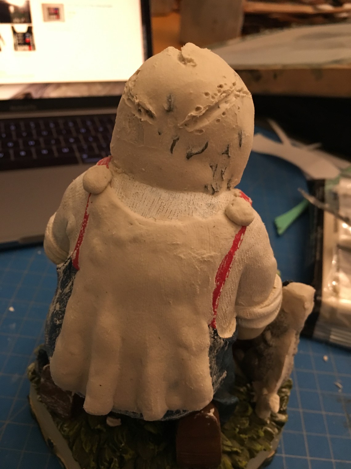 I found this figurine at the thrift store for a couple bucks and decide to give him a makeover. It was a resin cast made for sale at Rite Aid drug stores. I was kinda amazed that anyone would look at it and think owning it would be a good idea.