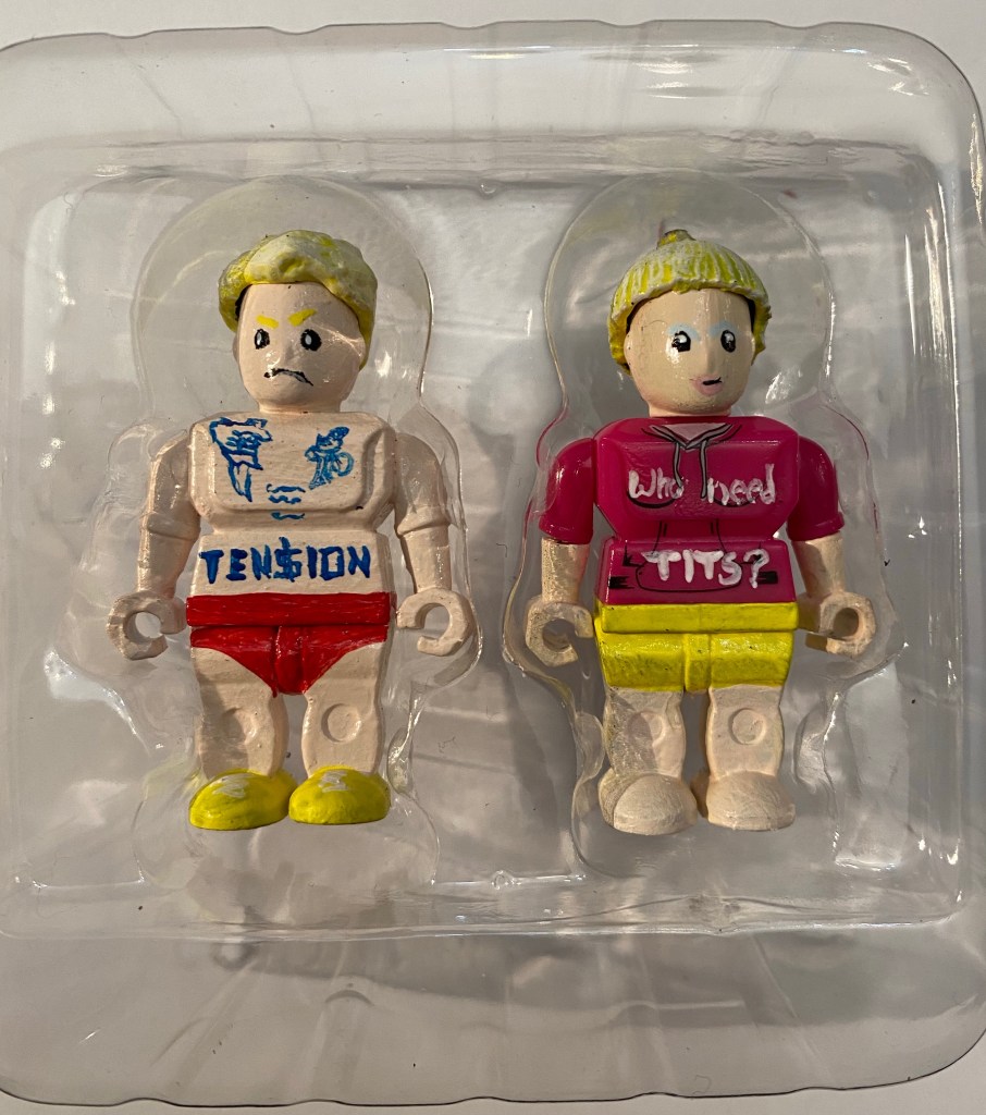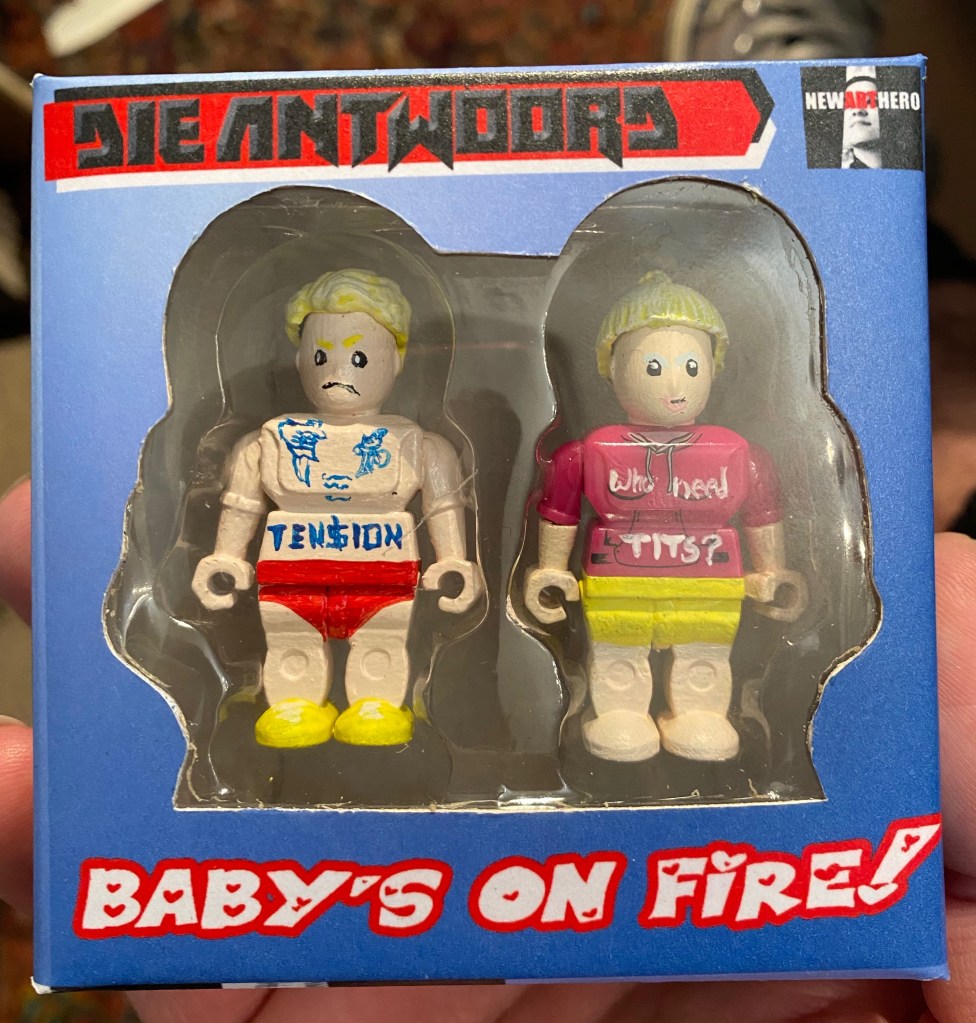 I bought a couple two-figure sets and sat down to look through them. After mixing and matching the figures around I hit on the idea that with a little Dremel work and some paint, I could transform two of them into Ninja and Yo-Landi from Die Antwoord’s Baby’s on Fire video.