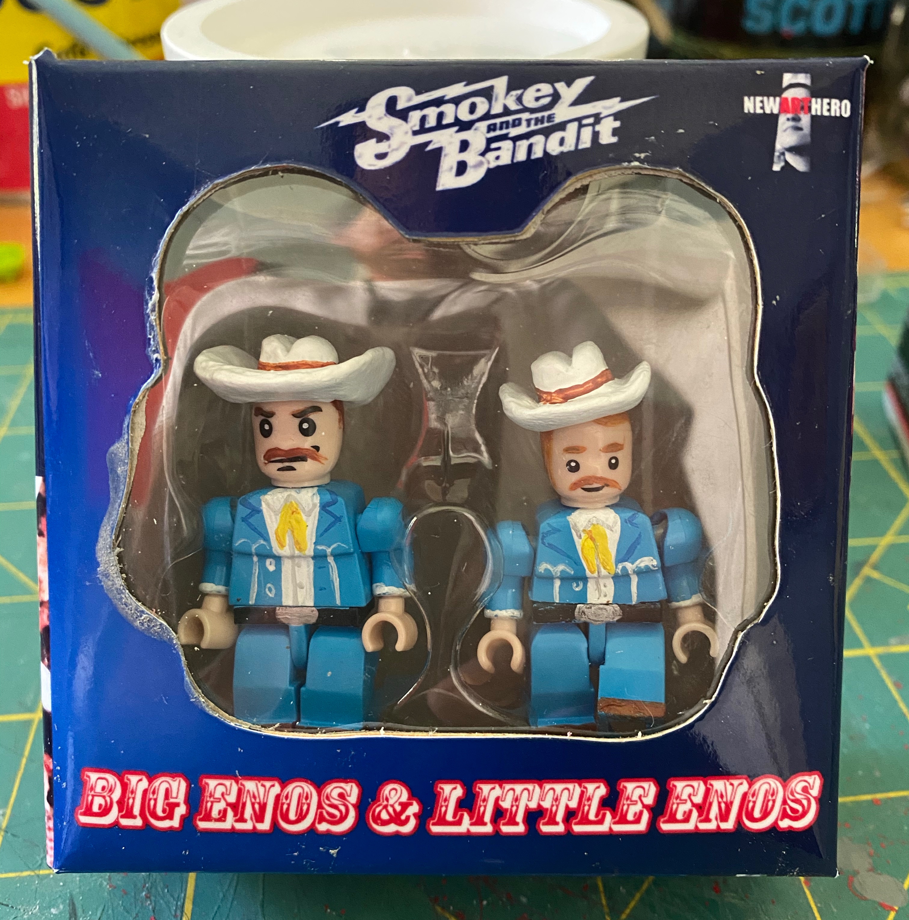 I also made a set of figures from Smokey and the Bandit, Big and Little Enos Burdette. These guys were a little trickier since they were dressed the same and the only real difference was their height. I thought this would be a pretty simple thing to change but altering the height of mini figures proved to be tricky.