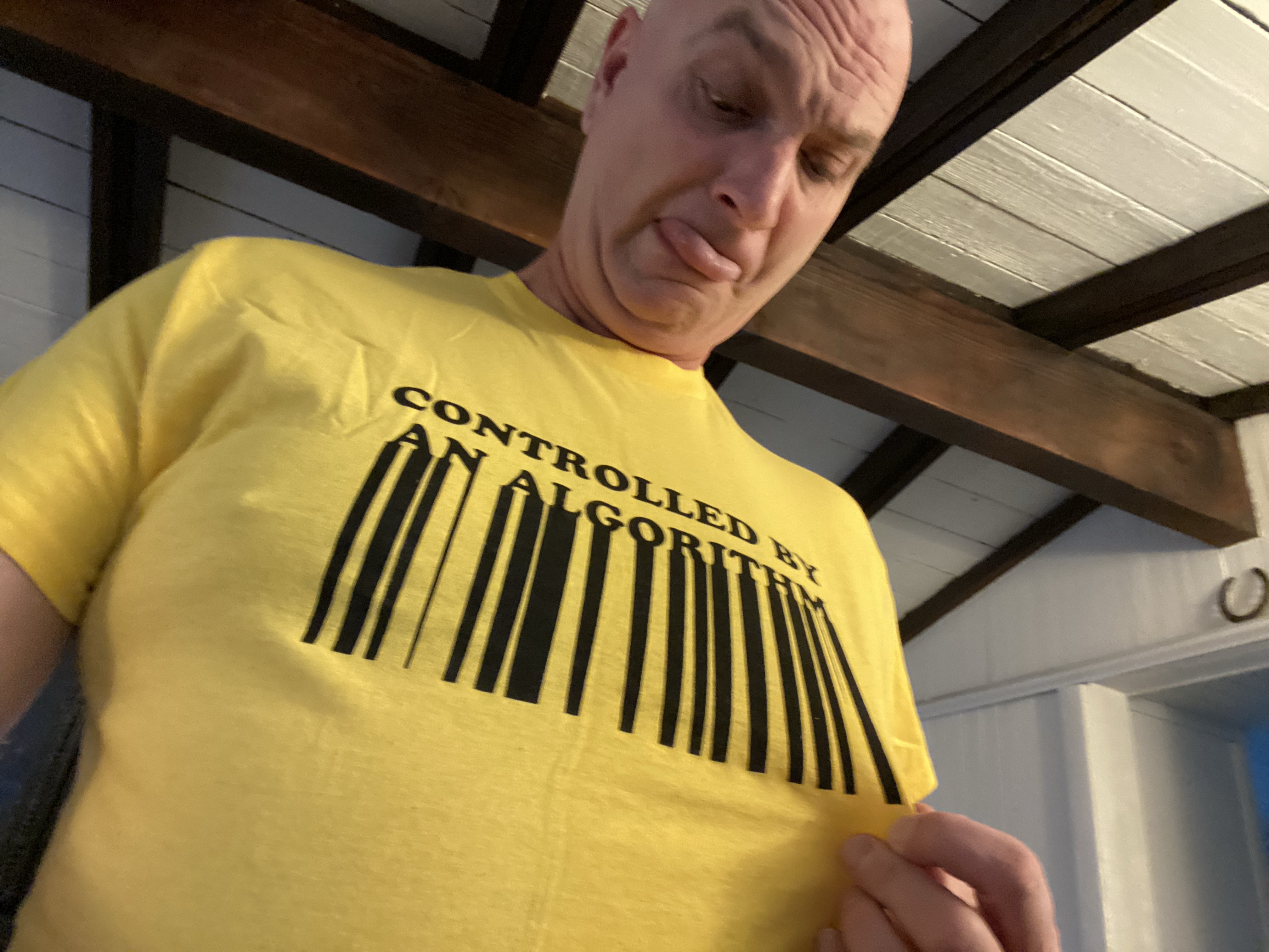 She came up with the slogan, Controlled by an Algorithm, I did the work on the design and we mailed them off to a group of friends thus enrolling them in our Fan Club.