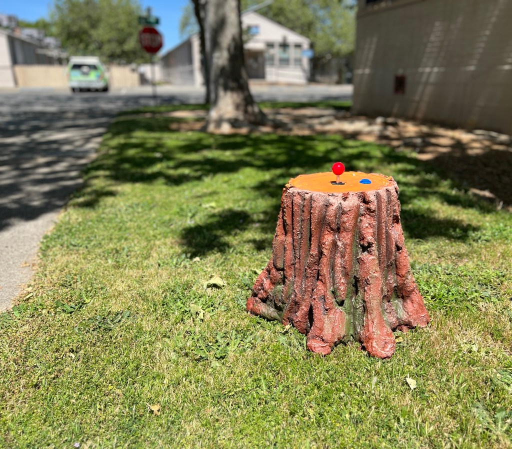After we finished up we weren’t sure what to do with the stump we made so we converted it into a future primitive game console.