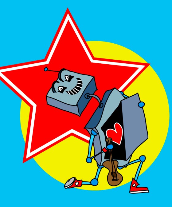 This is the packaging design for the first Musical Robot CD “Wake Up Robot!” I did the illustrations in Adobe … More